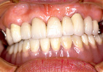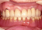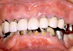 この方は10年以上前に初診で来院された時、古いブリッジと歯ぐきの隙間のほとんどが虫歯で、歯周病も重度に進行していました。治療は歯周外科処置を行い、上顎は新しいブリッジを装着し、下顎は磁性アタッチメントによる義歯を装着しました。